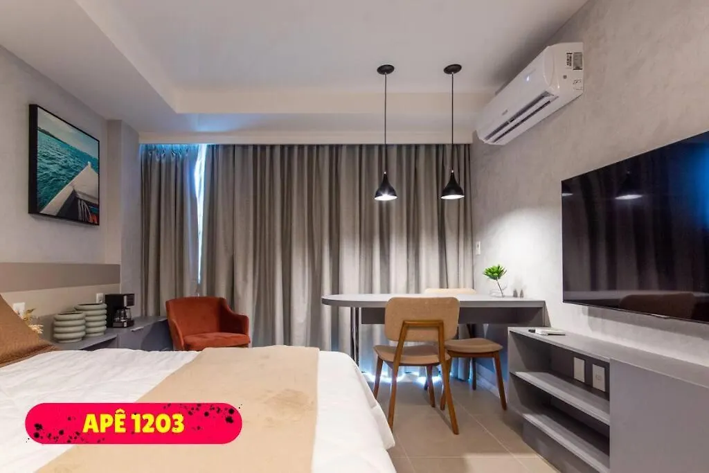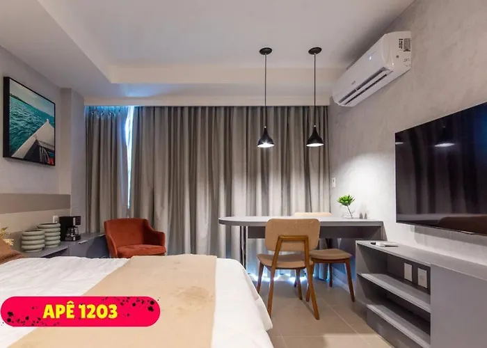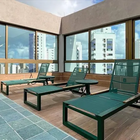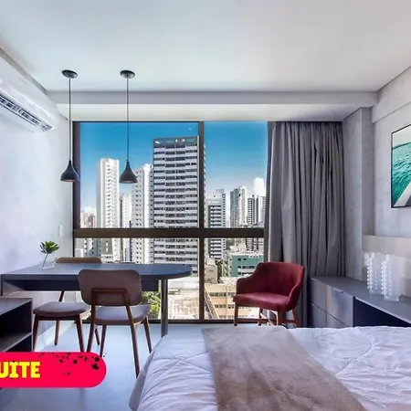 レシフェのBoa Viagem地区にあるStudio De Luxo Na Praia De Boa Viagemアパ-トはレシフェ/グアララペス・ジウベルト・フレイレ国際空港から5キロメ-トル離れています. 書き物机,コ-ヒ-/紅茶メ-カ- と衛星放送チャンネルの薄型テレビのある宿泊施設を提供しています.
